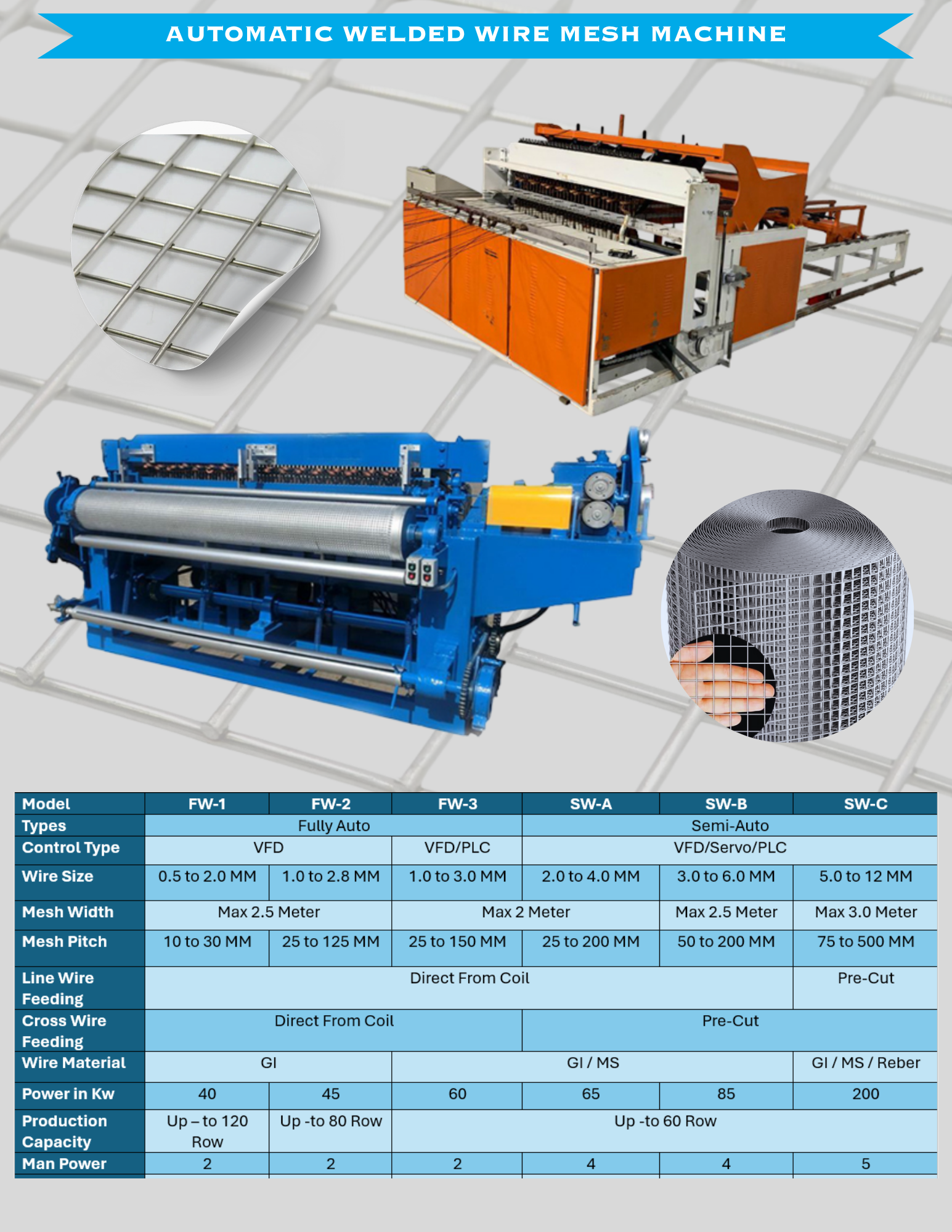 SW-C: Supports GI, MS, and Rebar wire materials